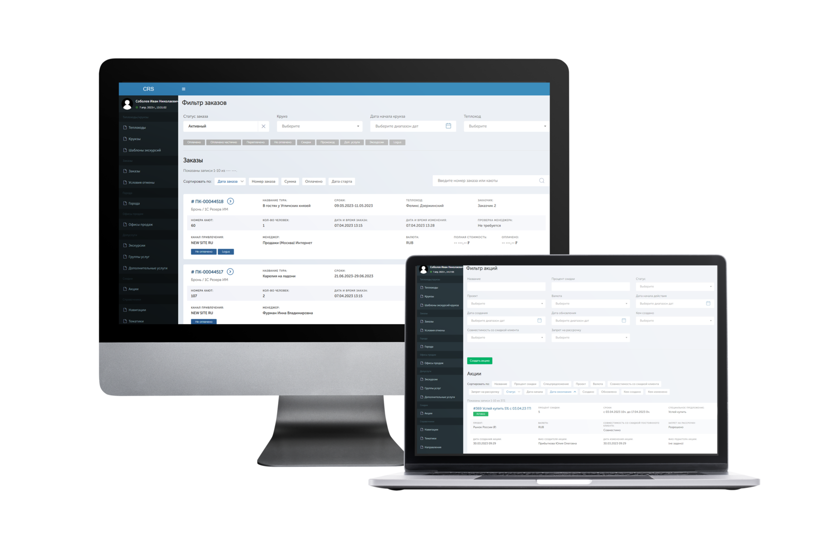 Система отвечает за все участки бизнес-процесса, связанные с продажами, предлагая пользователям административный интерфейс, интерфейсы бронирования, интерфейсы личных кабинетов физического лица, агента, менеджера компании, внутренний и внешний API, а также ряд интеграций с популярными сервисами (СRM, DMP, BI).